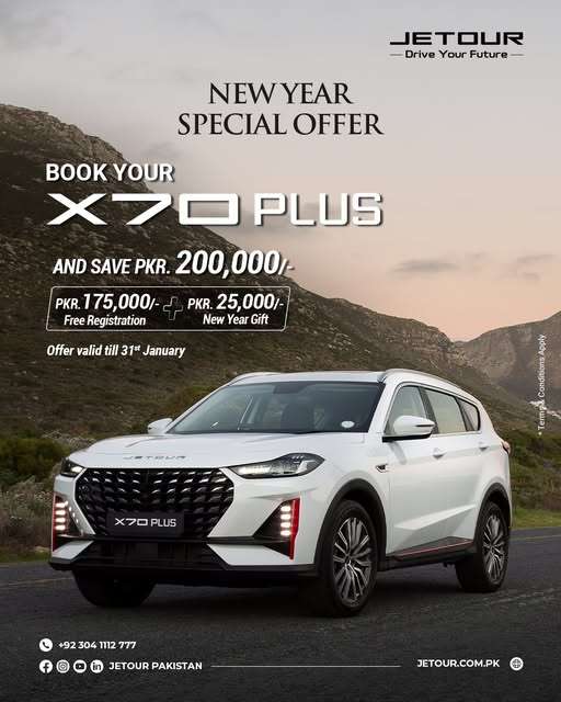 Jetour New Year Special Offer – Total Cashback of PKR 200,000 on Dashing & X70 Plus January 5, 2026 Read More »