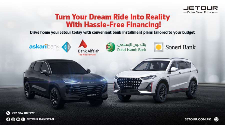 Jetour partners with Askari Bank to offer easy monthly installment plans for Jetour Dashing and X70 Plus. Start driving your dream SUV today with convenient financing options and quick approvals.