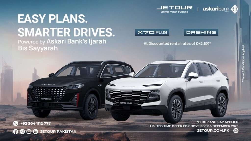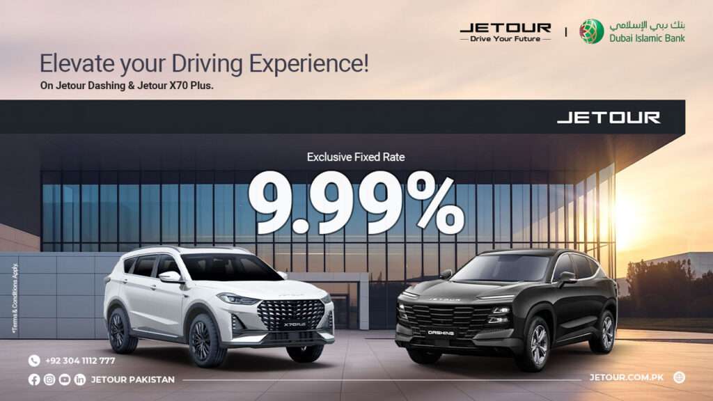 Jetour Pakistan Partners with Dubai Islamic Bank – Get Exclusive 9.99% Fixed-Rate Auto Financing Jetour Pakistan proudly announces its strategic partnership with Dubai Islamic Bank (DIB), offering customers an exclusive 9.99% fixed-rate, Shariah-compliant auto financing solution. This collaboration is designed to make the premium Jetour SUV line-up more accessible and affordable for customers across Pakistan. […]