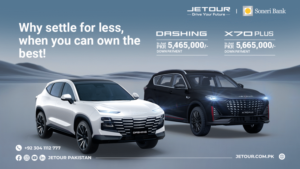 Jetour Pakistan Partners with Dubai Islamic Bank – Get Exclusive 9.99% Fixed-Rate Auto Financing Jetour Pakistan proudly announces its strategic partnership with Dubai Islamic Bank (DIB), offering customers an exclusive 9.99% fixed-rate, Shariah-compliant auto financing solution. This collaboration is designed to make the premium Jetour SUV line-up more accessible and affordable for customers across Pakistan. […]